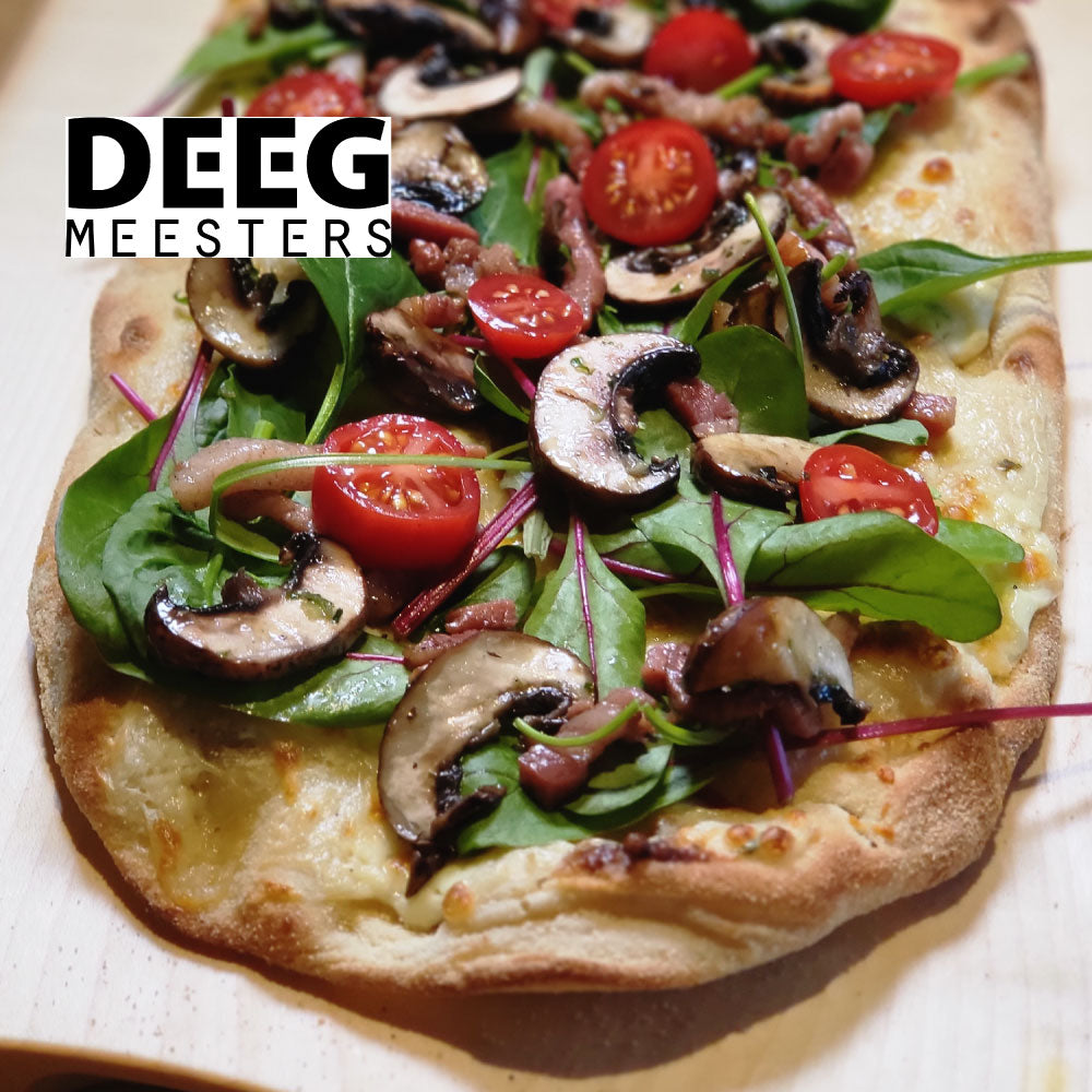 Na een uitgebreide periode van ontwikkeling, testen en het verfijnen van het bereidingsproces van onze pizzabodems, presenteren wij met trots DE PERFECTE pizza- en pinsabodem die een positieve impact gaat hebben op jouw onderneming. Met zelfvertrouwen noemen wij onszelf Deegmeesters!