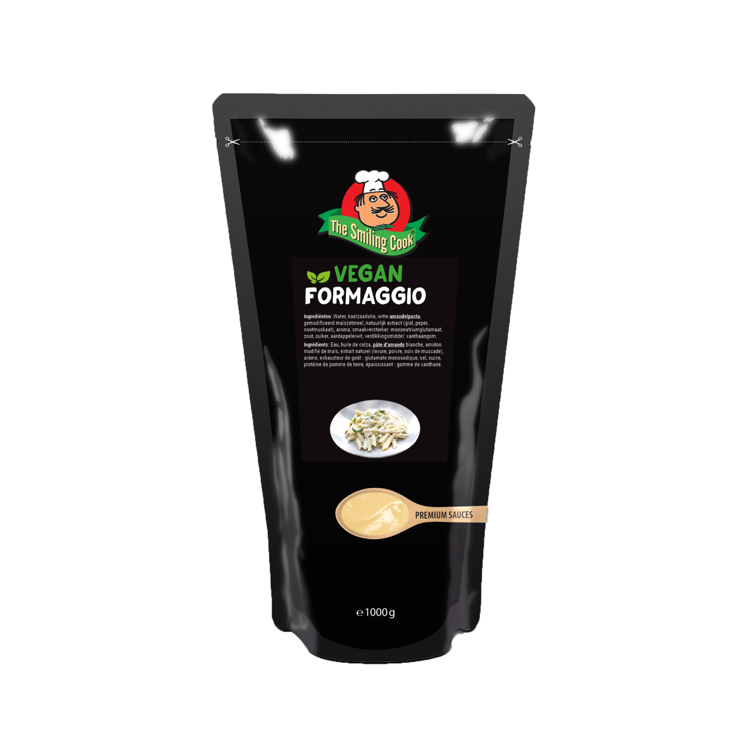 De Vegan Formaggio kaassaus van The Smiling Cook levert de volle, romige smaak van kaas, helemaal plantaardig.