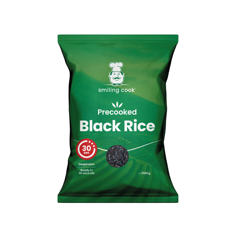 Voorgekookte en diepgevroren zwarte rijst van Smiling Cook.
